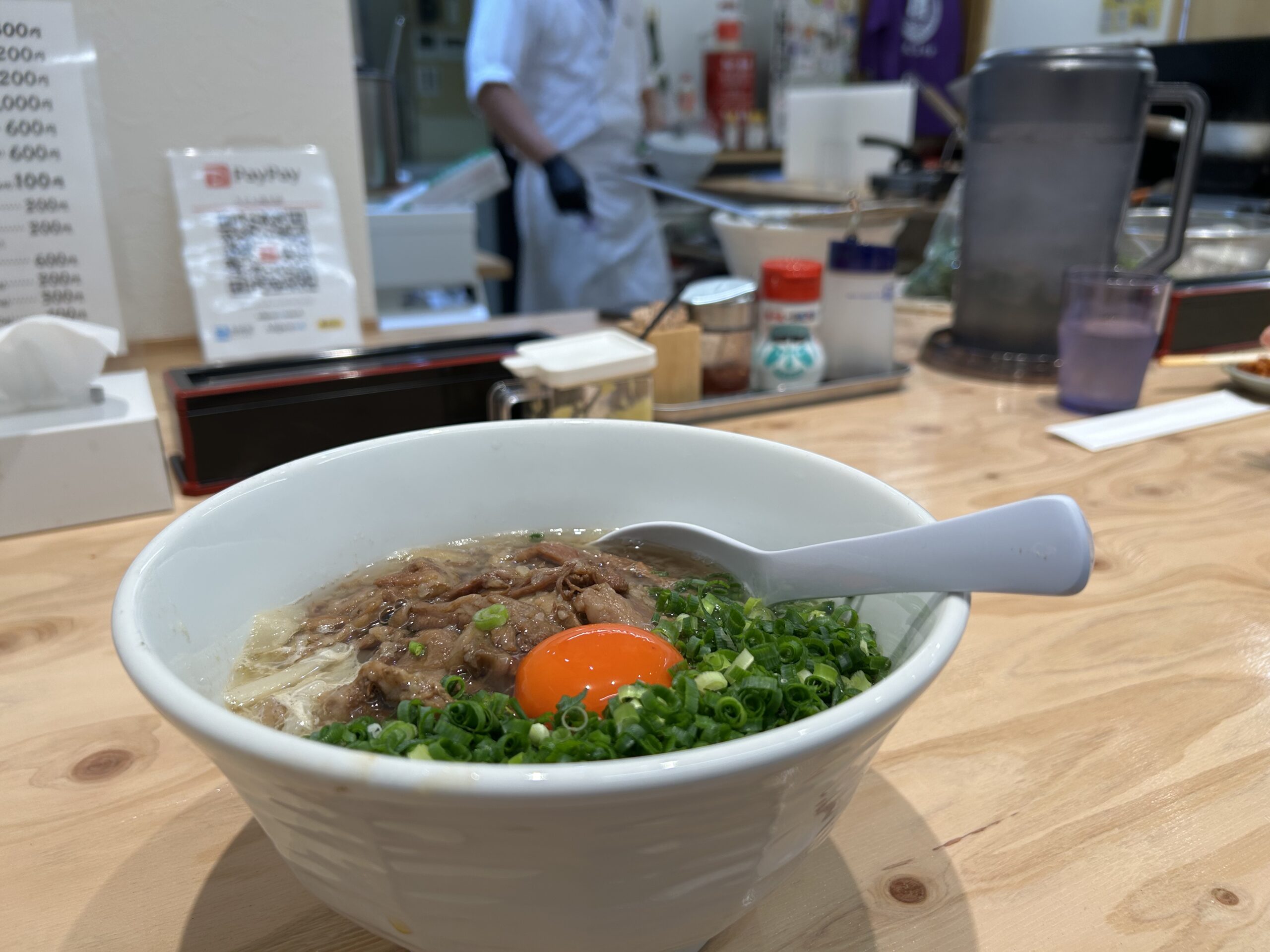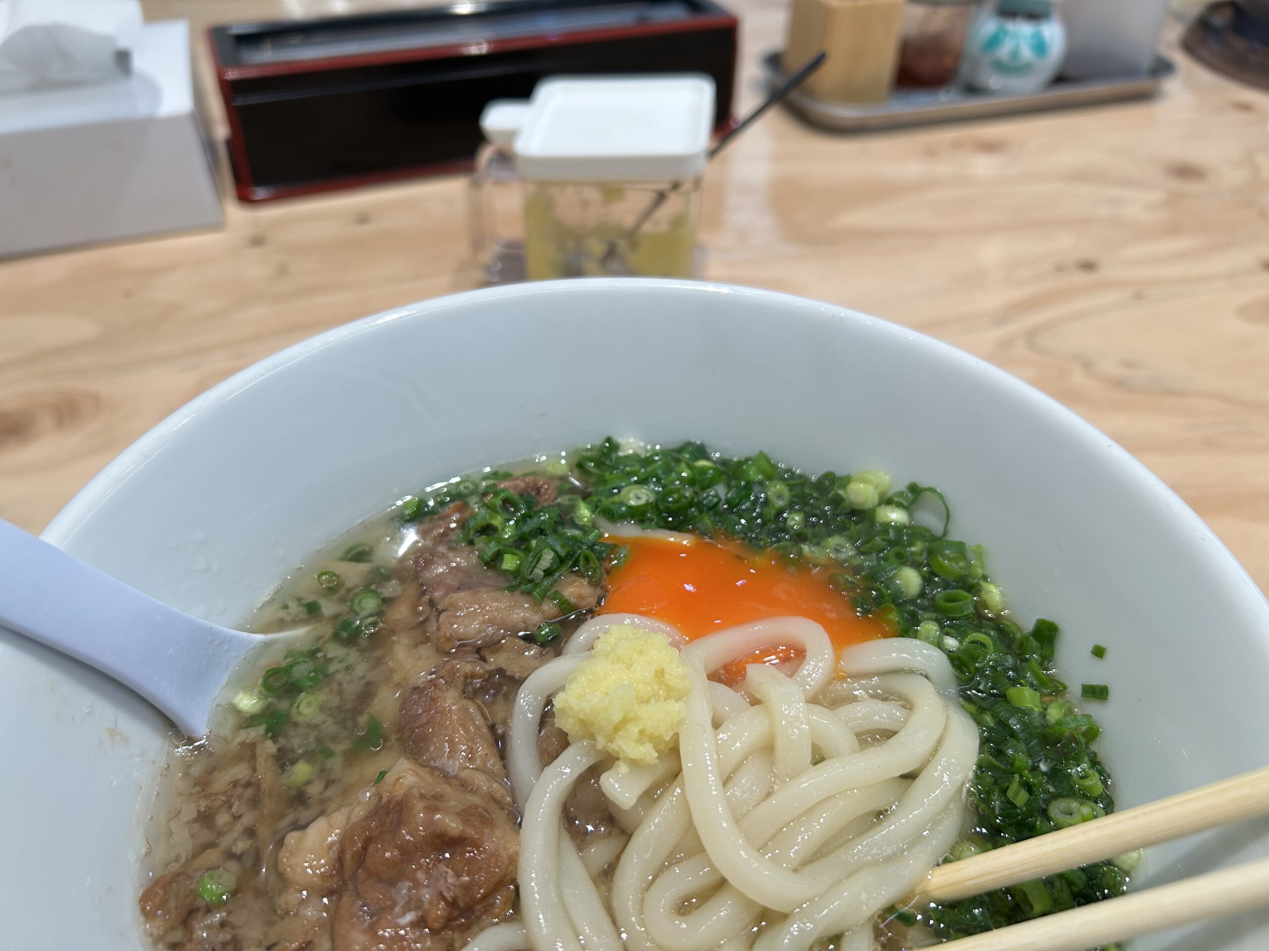 今回は大将おすすめの「月見うどん」をオーダーしました。