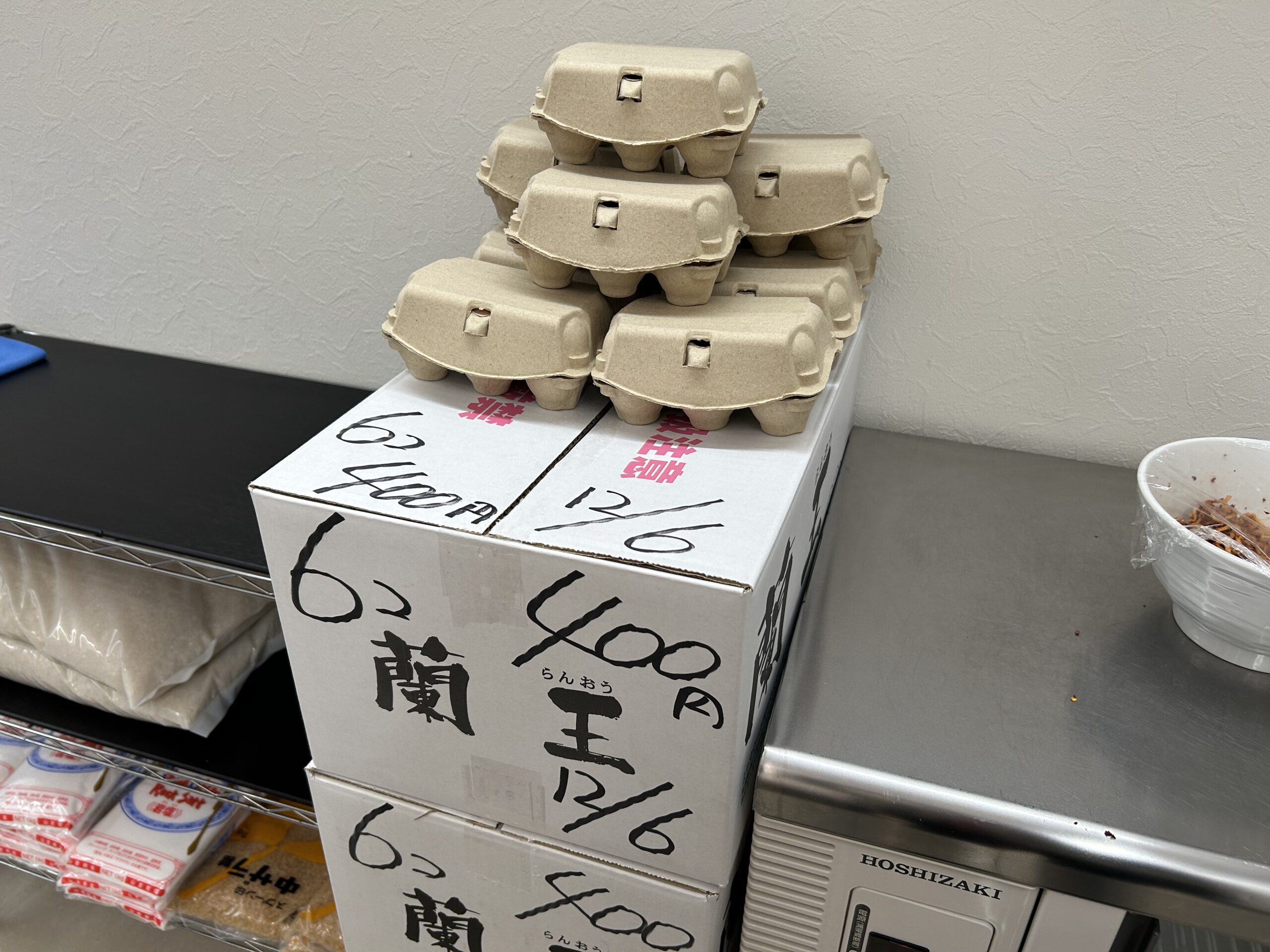 うどんで使用されているたまご「蘭王」も販売されてます。色が濃くてとてもおいしいたまごです!