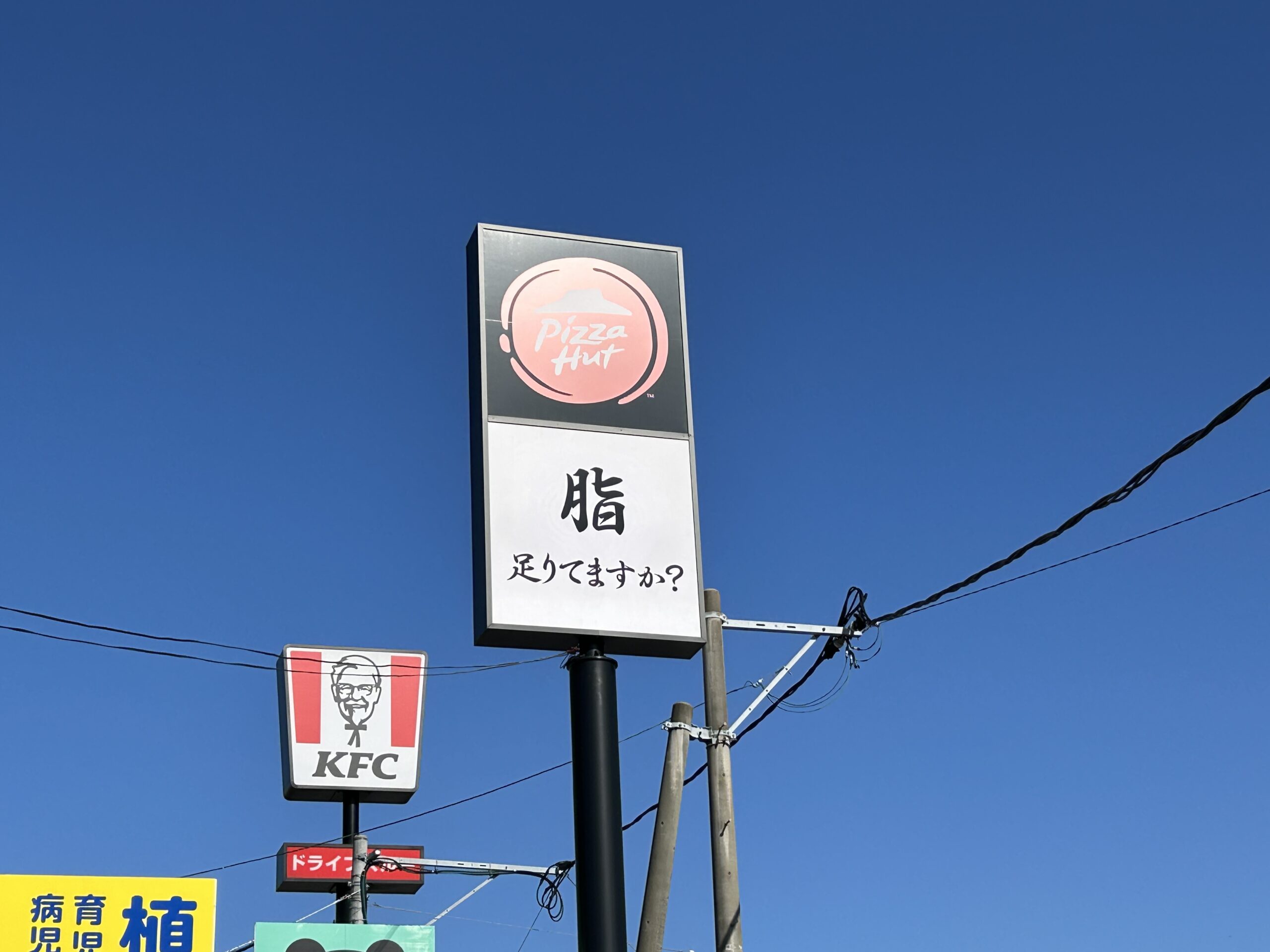 車で来る際には、お馴染みのフレーズ「脂足りてますか?」の看板を目印にすると分かりやすいです!